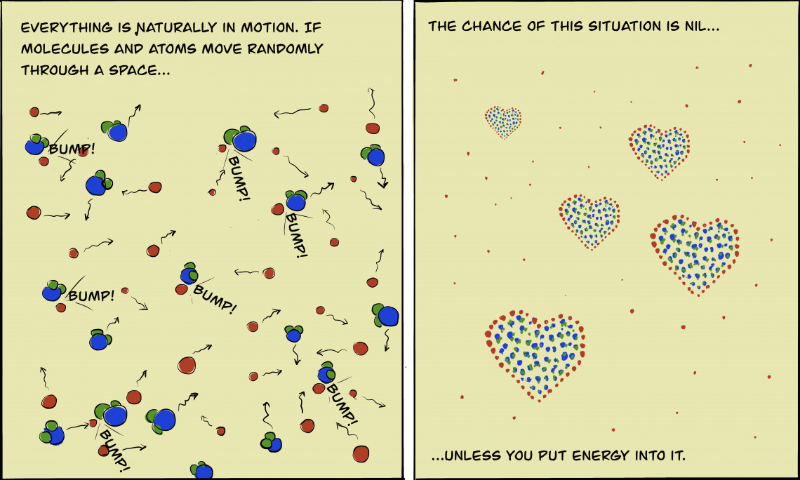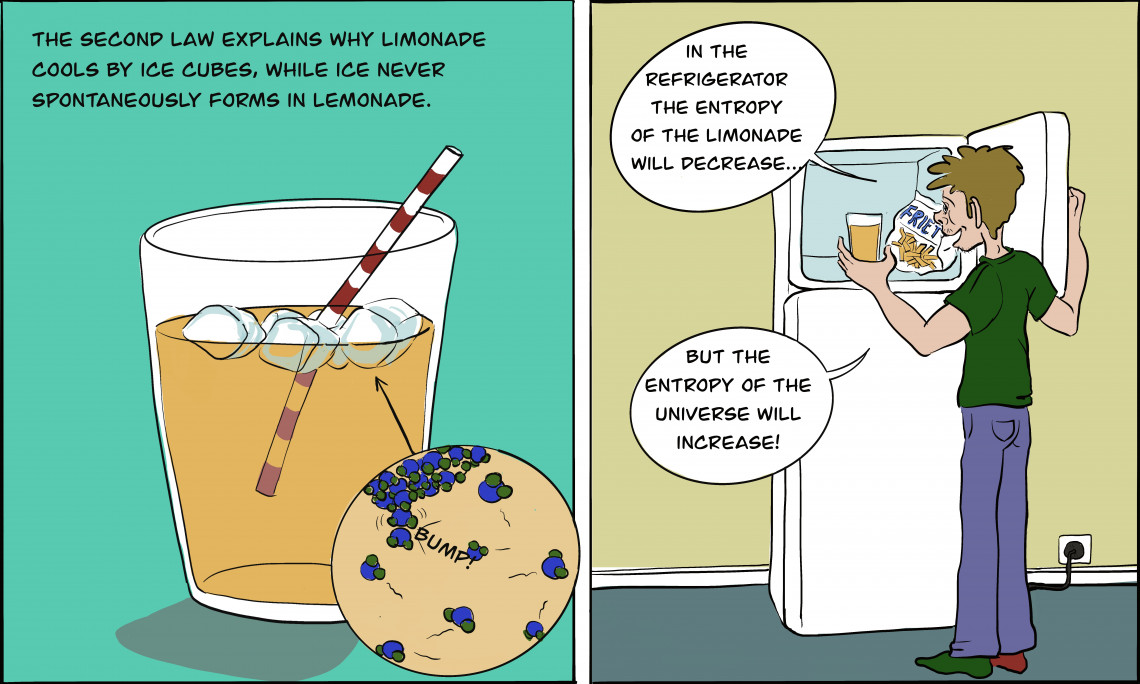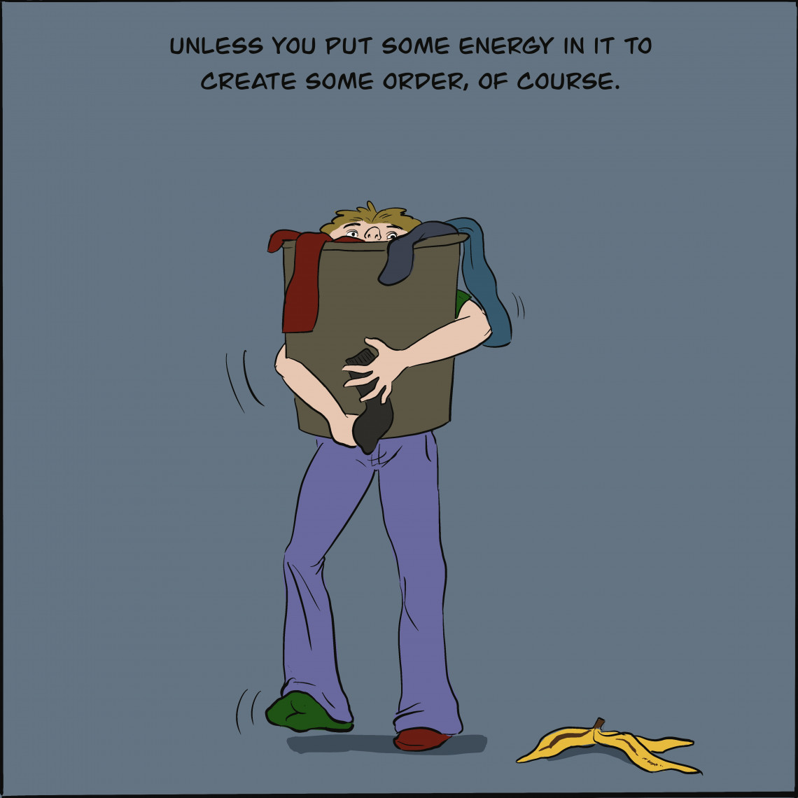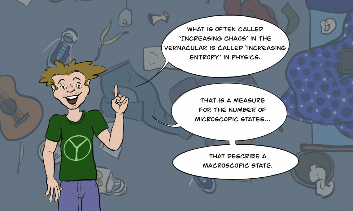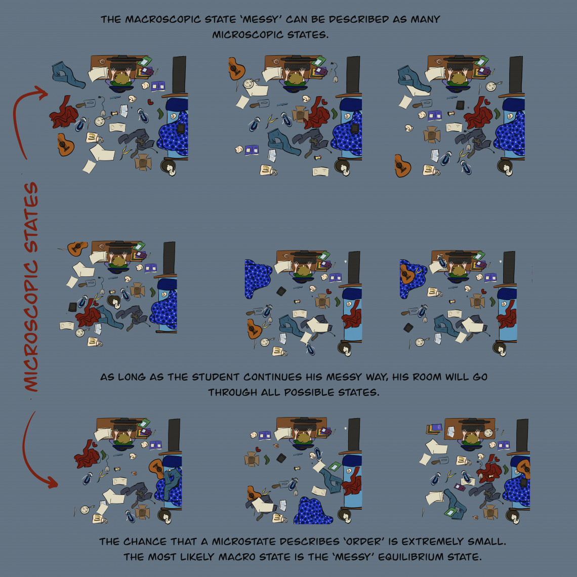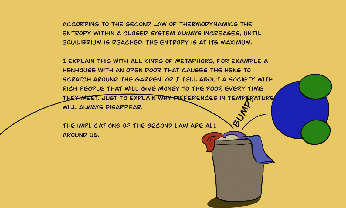 How do teachers ensure that the penny drops for their students? Often through the use of imagery. In the series 'Lessons in imagination', science journalist and illustrator Enith Vlooswijk shows exactly how they do that. In this episode, Martin van der Hoef (ATLAS, Chemical Science & Engineering) explains the second law of thermodynamics.