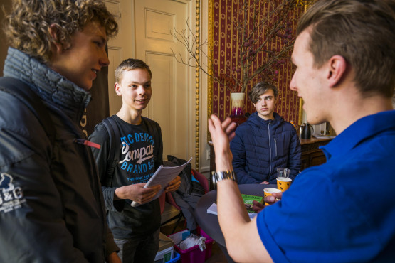 ‘Ik vond het erg handig dat ze alle studies afgingen en vertelden wat er zoal bij komt kijken,’ vertelt Pauline (17), die met twee klasgenoten vanuit Heerhugowaard naar de Herengracht afzakte. ‘Het heeft de Universiteit Twente voor mij op de kaart gezet. Ik wist hiervoor eigenlijk niet eens dat het bestond.’ Oof (17) knikt beamend: ‘De Universiteit van Amsterdam of de TU van Delft zijn de grote universiteiten waar je veel over hoort. De UT is dat niet. Enschede is hier ook best een stukkie vandaan – dat speelt ook mee.’