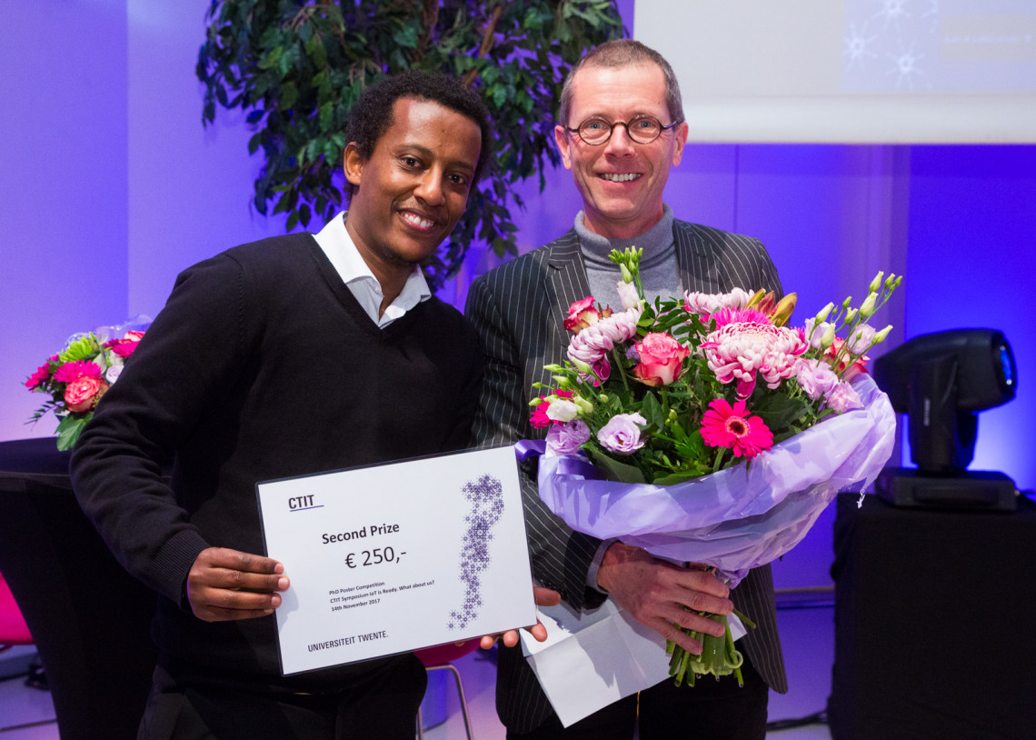 For the challenge, 17 PhD candidates who are currently working with CTIT had to summarize their research project in a single minute. Most researchers handled the challenge pretty well, though some of them missed a few seconds to finish their words. After 17 minutes of an overload of information, attendants were invited to read the candidates’ posters in the coffee break area and vote for their favorite contestant using their smartphones.