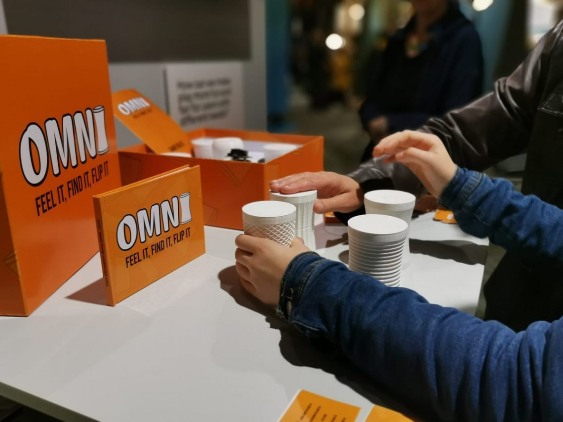 ‘Feel it, find it, flip it.’ That is the basis of OMNI, a game designed specifically for blind and visually impaired people. ‘As it turns out, though, it is suitable literally for everyone,’ says Michelle Sudjito, Creative Technology student and one the designers of OMNI. ‘It started as a study project. We wanted to create a reaction game which does not involve sight, because there are very few of those available.’ The game is based purely on touch. It involves several cups that vibrate. The players need to feel for the vibrating cup, find it and flip it, which earns them points.