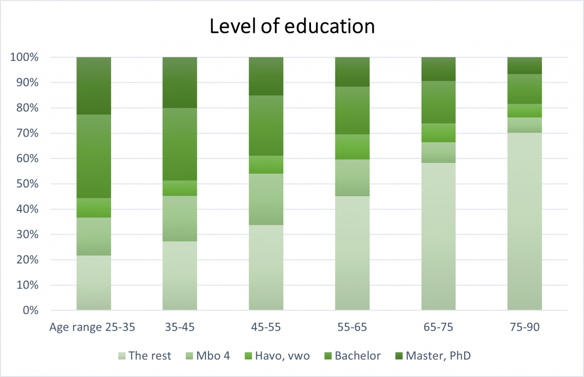 The level of education in the Netherlands has risen sharply over the years. Only 18 percent of people over 75 received higher education.