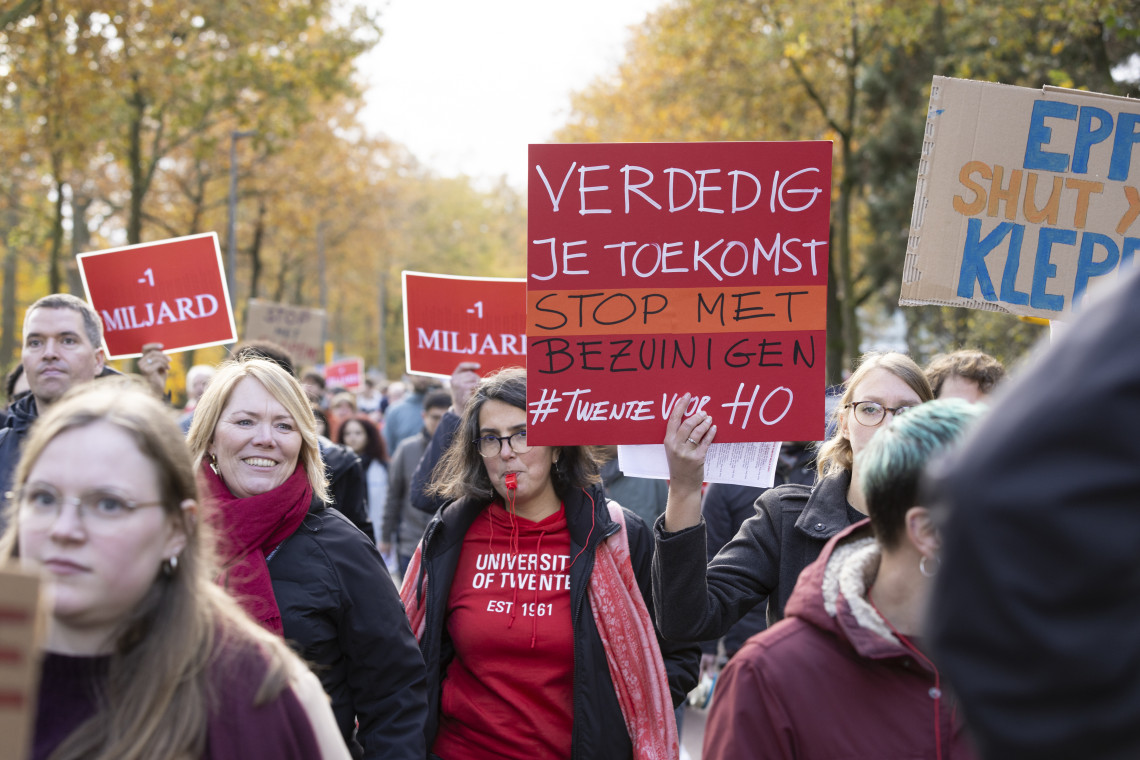 The singing, the intransigence, the fiery looks in the eyes... It seems that this is not the first and certainly not the last austerity protest. Although the O&O square and a little later the streets of the campus became a kind of echo chamber: a collection of like-minded people who find each other in the shared misery. Preaching to the choir, in other words. However unanimous, it remains to be seen whether this Twente harmony of desperation, dissatisfaction and defiance will reach the typically deaf ears of The Hague.
