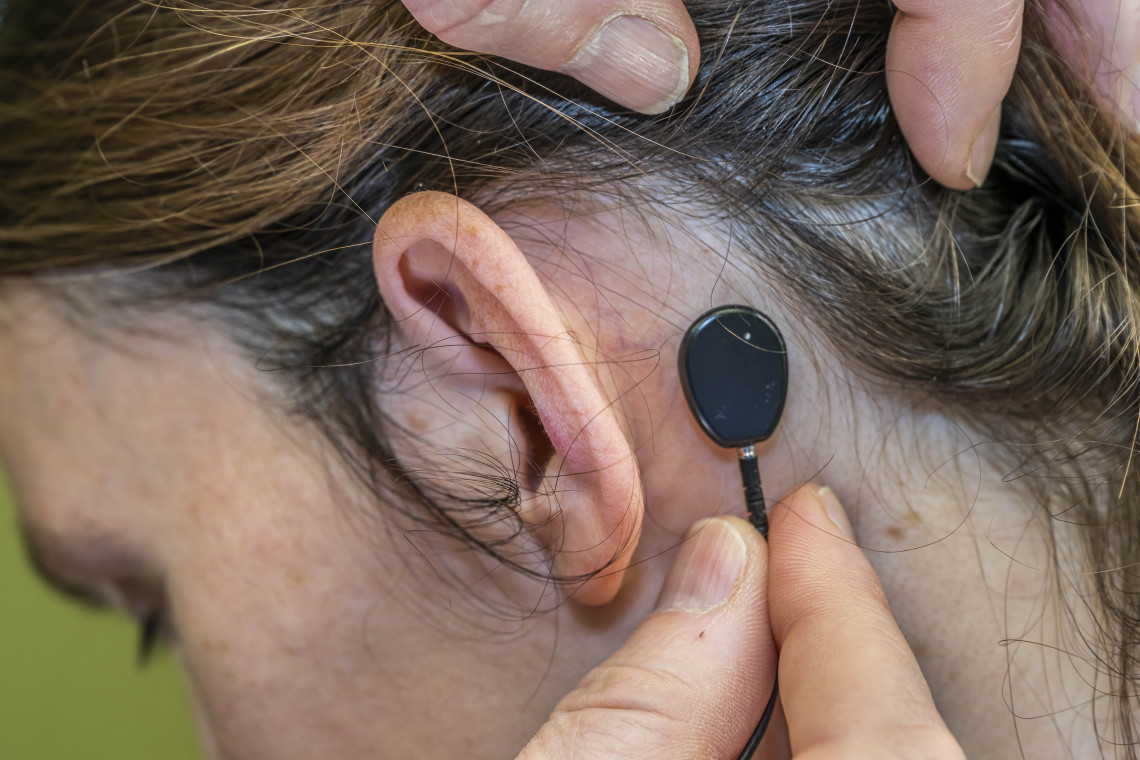 To predict if patients will benefit from VNS, Van Putten and his team are looking for clues in the brain that may forecast if this treatment works before the implantation of the device. Van Putten: ‘We aim to identify brain biomarkers that tell us beforehand if a patient will respond to this treatment and how effective it will be.’ The scientists believe that the activity of the brain, measured as an EEG, may hold such clues. Therefore, the team uses a small electrode, placed just under the skin behind the ear. The electrode, developed in Denmark, can continuously measure brain activity, for more than one year. Van Putten and his team started the clinical trial in December 2020, and at the moment, six patients have been included. To reliably test their hypothesis, they will include forty patients in total.