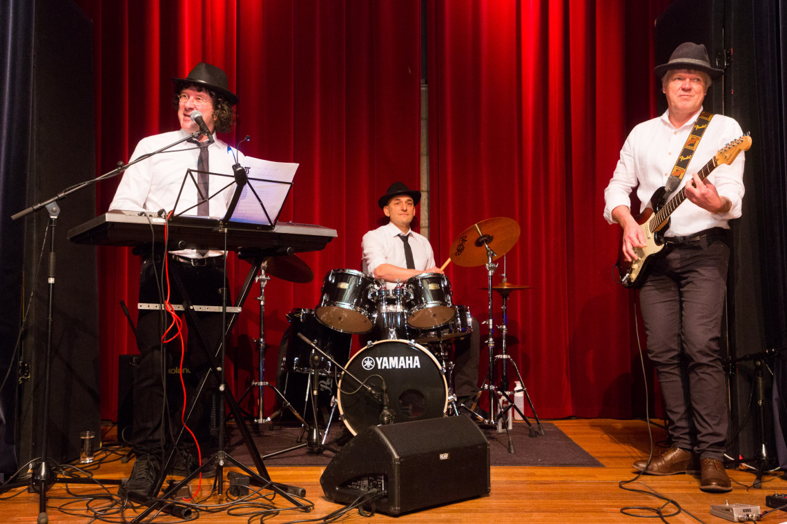 Photo: Verbeek on piano with the 'professor's band' during UT's 2018 New Year's Breakfast (photo by Gijs van Ouwerkerk).