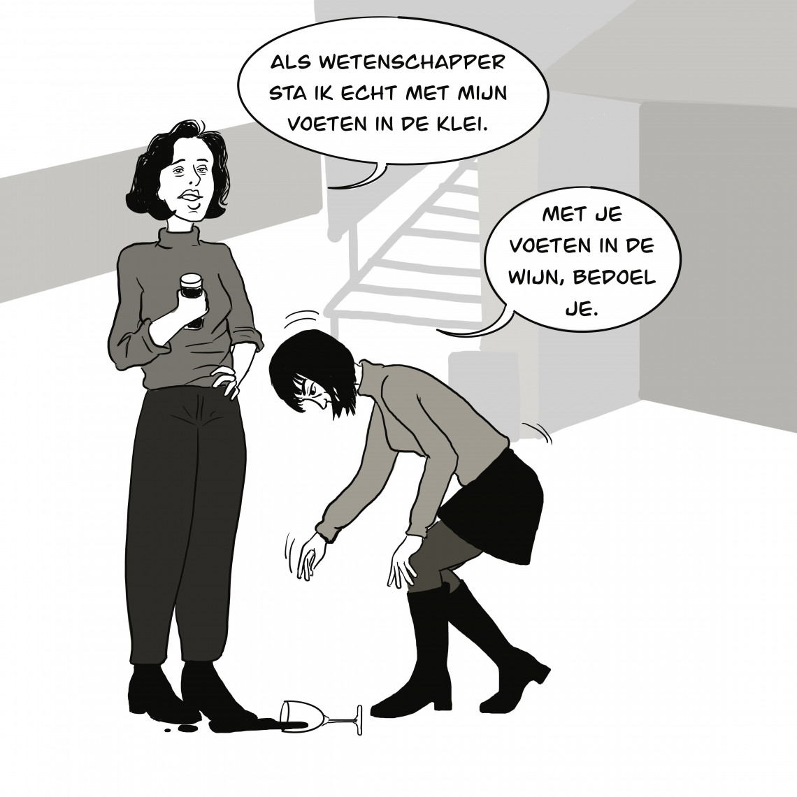 Het idee dat wetenschap en praktijk twee verschillende dingen zijn, ziet ze ook bij studenten wel eens. ‘Die zeggen: ik wil stage lopen bij bedrijven, dan zie ik hoe het écht gaat. Maar je kunt ook in een onderzoeksproject meelopen waarbij we bij twintig bedrijven onderzoek doen, dan krijg je een veel breder beeld. Er is vaak een gevoel dat wetenschap iets is wat in een klein kamertje wordt gedaan door een wat oudere man met een geruit jasje aan. Terwijl de wetenschap, dat is echt met je voeten in de klei staan.’