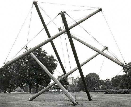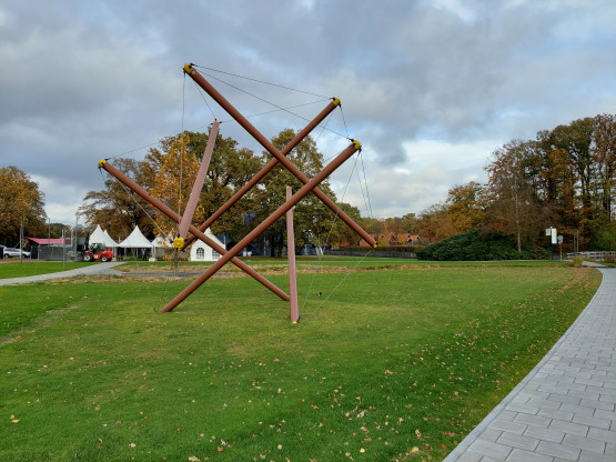 Because what we now consider to be a work of art, once started out as a student prank. The idea’s origin lies with former students Jaap Hos and Jasper Latté. Together with three fellow students and supported by employees and companies, they created the structure out of six discarded telephone poles and steel wire. On Good Friday, 12 April 1974, they drove onto the campus at 4 o’clock in the morning to assemble the structure. ‘It had to be done very precisely,’ Hos told UT News in 2013. ‘When we pulled it all together one of the pulleys snapped, which made it quite tense, but ultimately the giant was erected at around eight o’clock in the morning.’