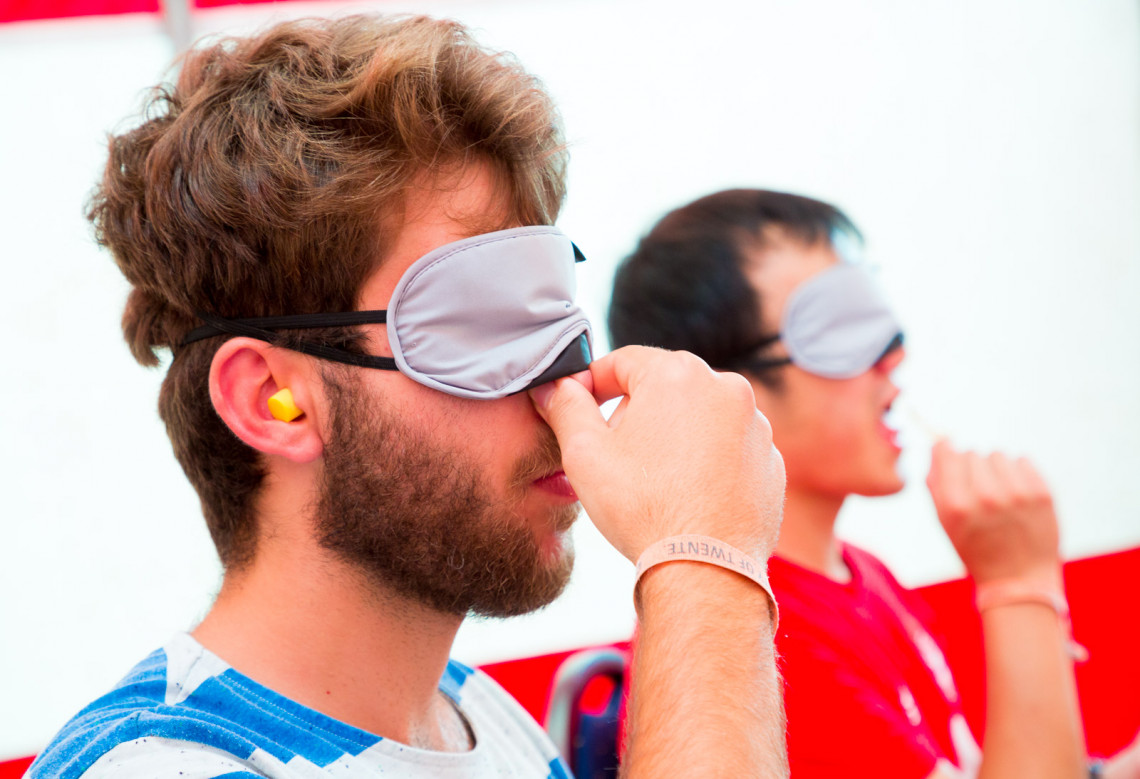 German student Michael Scholz participated in the ‘blind tasting’. The participants of this lunch activity were given three rounds of Dutch snacks in order to determine if they were ‘supertasters’, ‘normal tasters’ or ‘non-tasters’. Blindfolded and with earplugs in their ears, the students were served traditional Dutch licorice alias ‘drop’, herring and rye bread. During the tasting the participants were informed that only a quarter of the world’s population belongs to the ‘supertasters’ category. ‘I’m not really a supertaster,’ said the German student. ‘But I think that my Italian friends will do really well here.’
