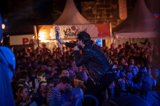 Jett Rebel was de headliner bij het introductieconcert, woensdagavond op de Oude Markt. Zelfs de regen mocht de pret niet drukken voor de nieuwe lading eerstejaarsstudenten. Naast Jett Rebel speelden Rilan & The Bombardiers en de coverband Daredevils.