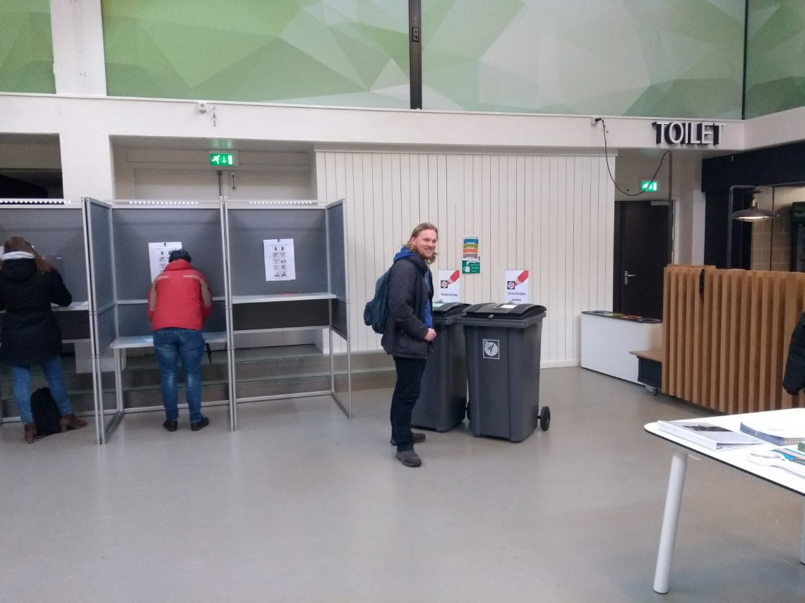 Daan Kampherbeek (22, civiele techniek): ‘Ik stemde GroenLinks omdat ik het klimaat het belangrijkste vind dat er is. D66 was voor mij geen optie, die vind ik te rechts. Bij de waterschappen ging ik voor de Algemene Waterschapspartij (AWP). Ik vind het vooral belangrijk dat ons waterschap zich bezighoudt met het filteren van medicijnresten uit afvalwater. We willen natuurlijk niet dat die resten uiteindelijk in ons drinkwater terecht komt. In Twente hoeven we ons geen zorgen te maken over hoogwater van de zeeën. We hebben immers ook geen dijken. Een specifieke voorkeur voor iemand heb ik niet, ik heb gewoon op de lijsttrekker gestemd. Ik zie stemmen als mijn plicht.’