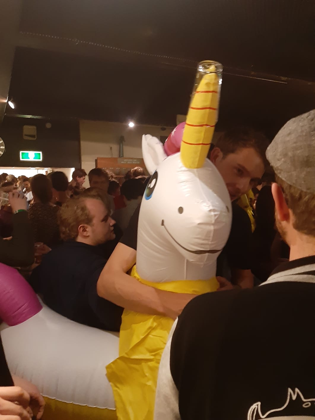 Eenmaal in Benedenpeil en DiepZat zit de stemming er meteen goed in. Het is druk en studenten drommen naar de bar om hun eerste twee stempels van de dag te verdienen. Het barpersoneel werkt overuren. Een groep mannen komt langs in een opblaasbare eenhoorn. Gezamenlijk zullen ze de tocht voltooien. Als er één naar het toilet moet dan gaan ze gezamenlijk naar het toilet, niemand verlaat de eenhoorn en ze laten niemand achter. Het is dé definitie van ‘samen uit samen thuis’.