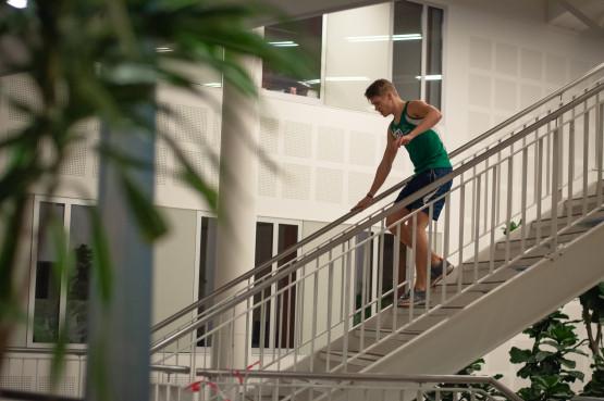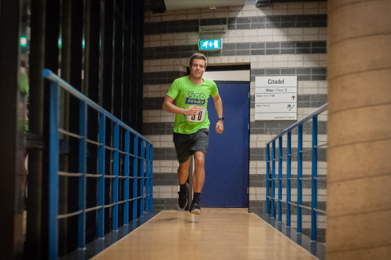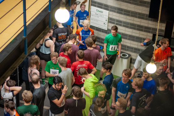 De Gebouwenloop van gisteravond toonde opnieuw aan dat je niet altijd naar buiten hoeft als hardloper. Zo'n 120 deelnemers snelden zich van de Citadel naar de top van de Horsttoren. Studententriatlonvereniging Aloha tekende voor de organisatie.
