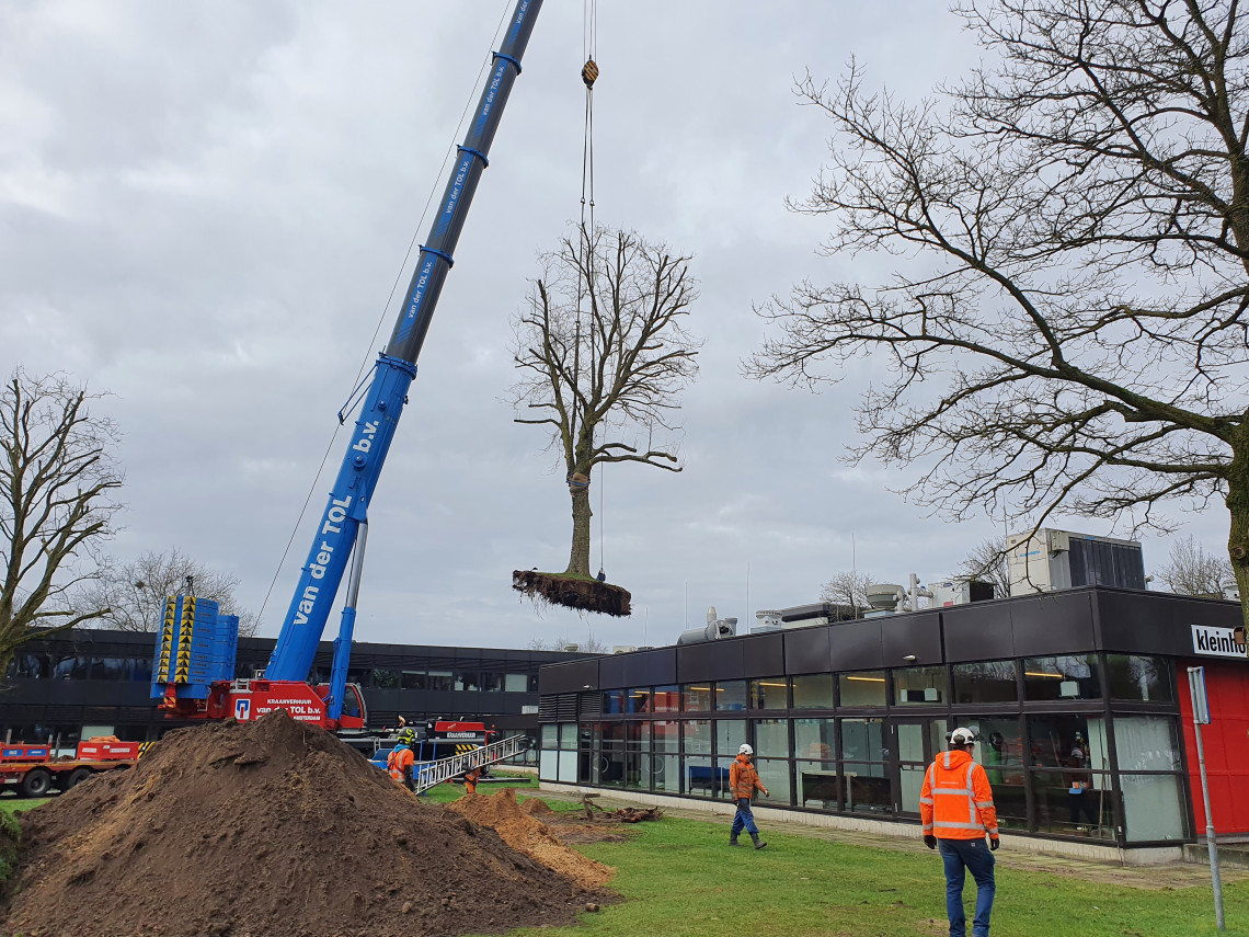 On the topic of trees, De Haan brings up the large adult trees that were recently replanted near the Horst building. They were ’40 tonne trees, planted with a crane’. They were moved out of the way for construction of the new workplace for the ET faculty. ‘The municipality wanted them cut down, but the university moved them. Trees are CO2 neutral at the age of 33 years, so this was very much worth it’. In addition, they add that, since large trees are often habitats for bats, before ‘removing a tree where there might be a bat nest, we build two new bat boxes and remove the tree only when the bat has moved.’
