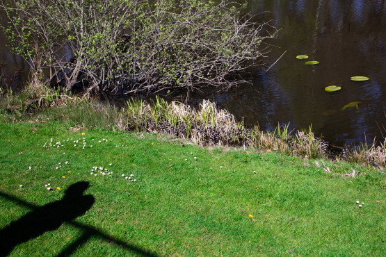 The pond behind Mondriaan is large, the water dark and dotted with waterlilies. Small scrubby trees grow along the edges of the banks, interspersed with various waterweeds. Kirschbaum picks a leaf from one dark-leaved plant and rubs it between his fingers, releasing a pungent scent. Water mint.