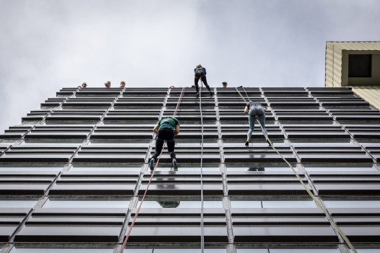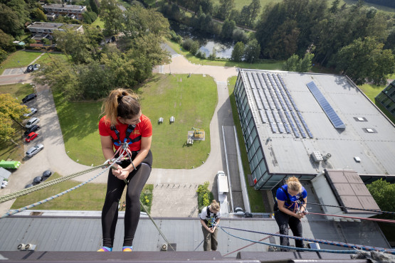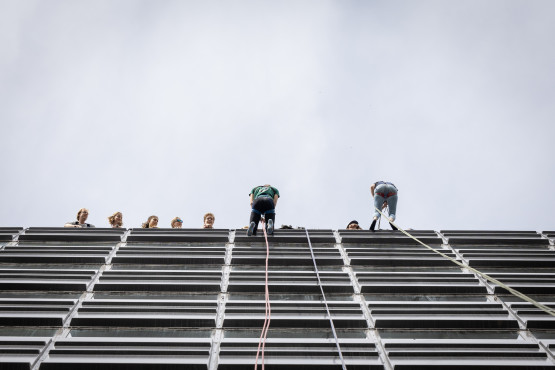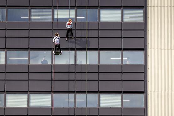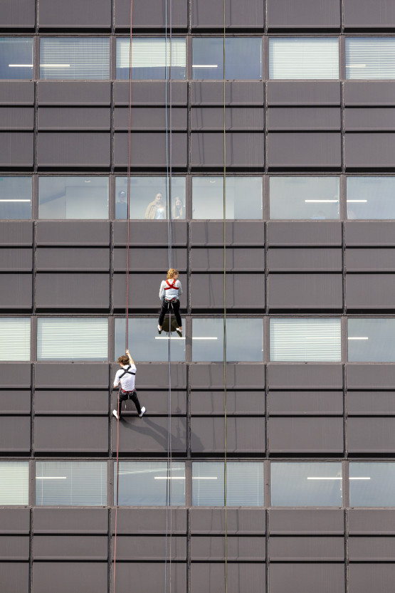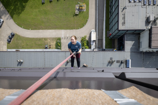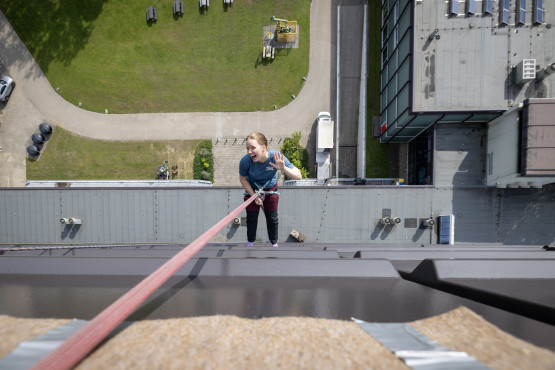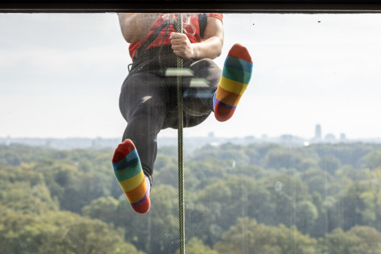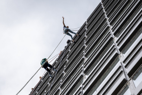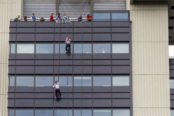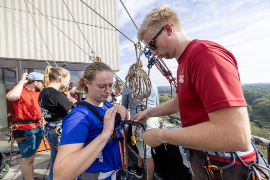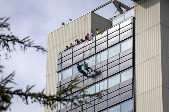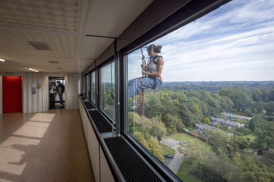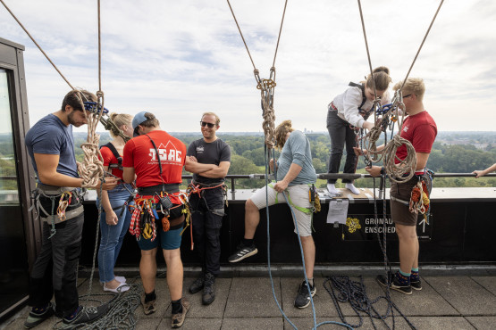 Niet vanwege de traditioneel defecte lift, maar dankzij studentenvereniging Taste kon je vandaag studenten via een touw de Horsttoren zien afdalen. De abseilactiviteit stond op het programma vanwege het zevende lustrum van de vereniging, die leidde tot Mission Impossible-achtige capriolen. Een fotoverslag.