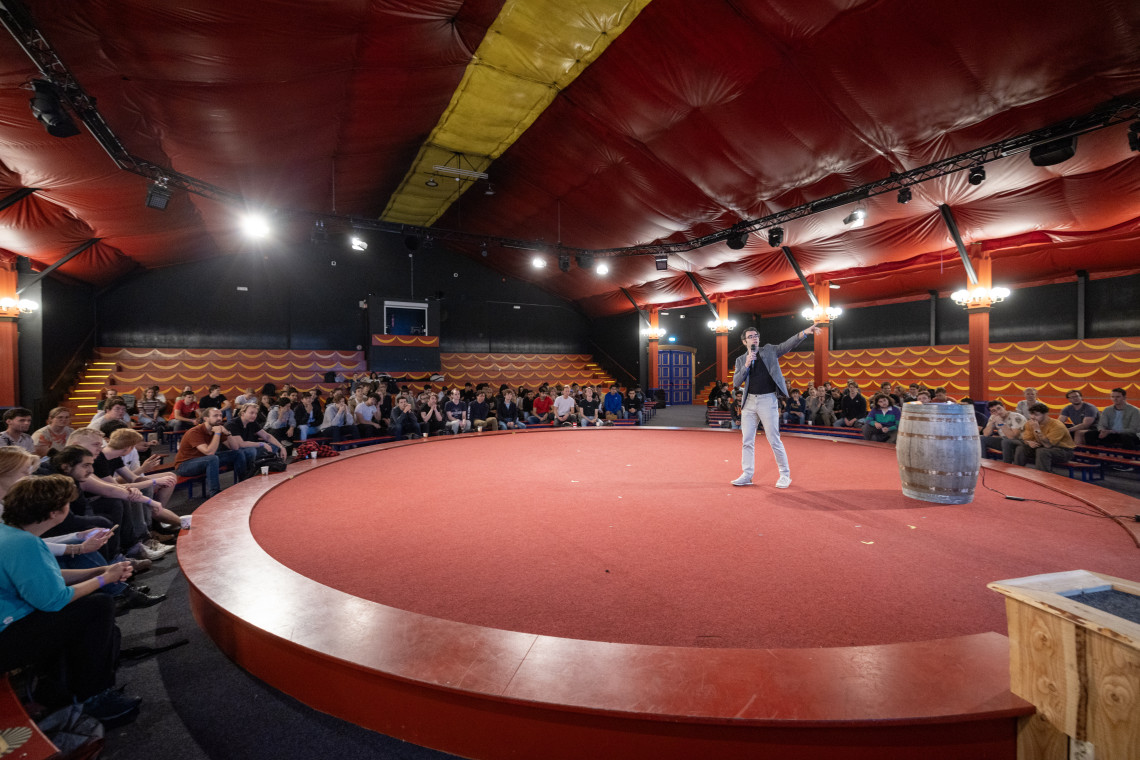 As cheerful as Zweers sounds on Friday morning, similarly welcome are the cups of coffee and filled cakes to many of his fellow students at the American Circus Theater. On the stage where ponies paraded in the not too distant past, now stands assistant professor Jurnan Schilder, who is also the initiator of the amusement park visit. ‘It feels like a field trip, doesn't it?’ he asks his students. ‘But many of the rides we visit are excellent examples of dynamics. I would say: go on the rides, so you can also experience the forces you calculate.’