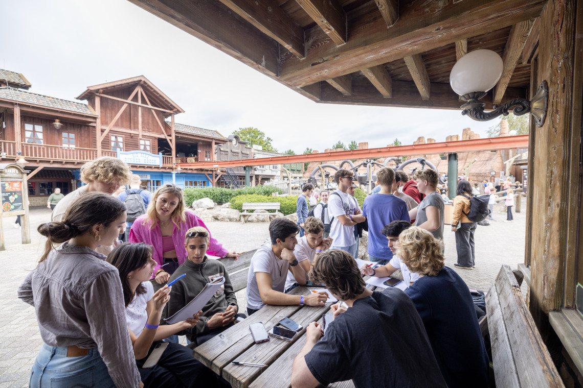 Amusement park Slagharen. Once a territory for ponies, it remains the domain of school classes and day trippers to this day. A place of spinning, turning, screaming and yelling. However, this day is also about studying.