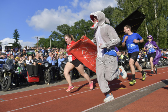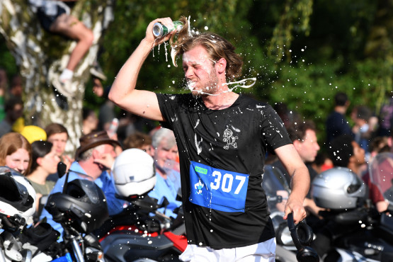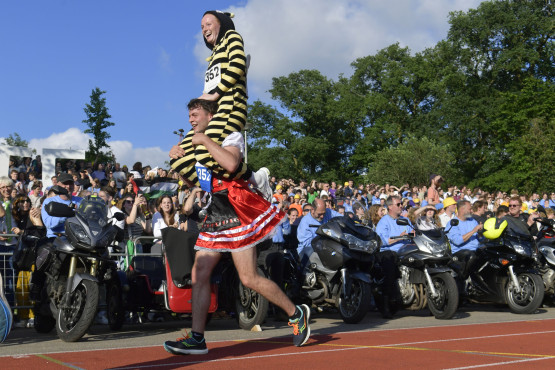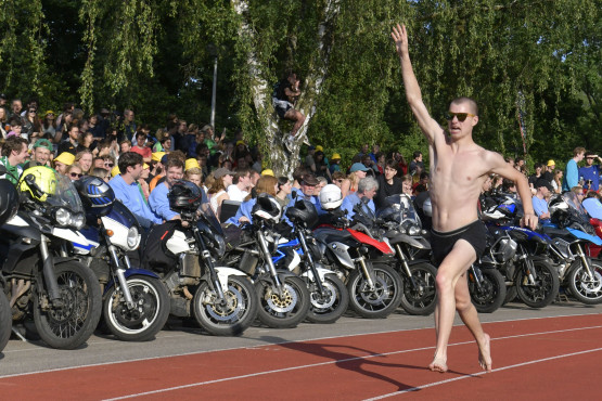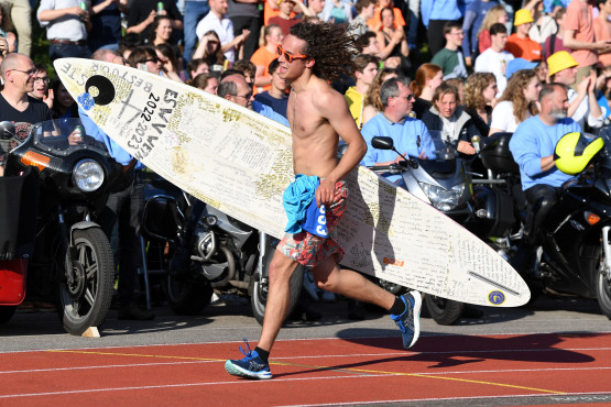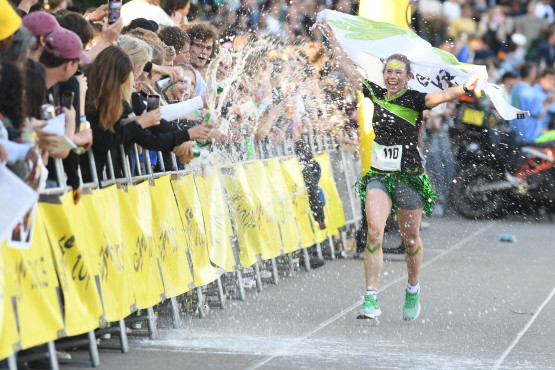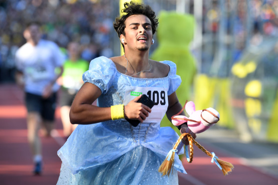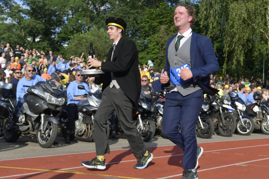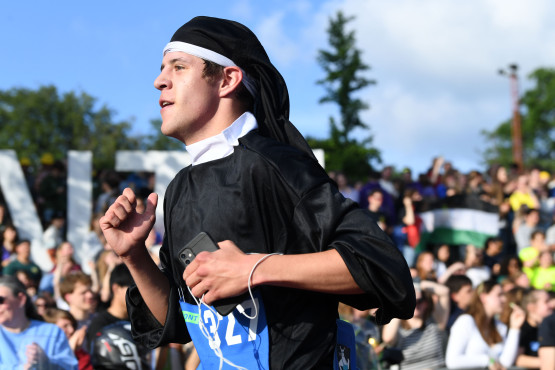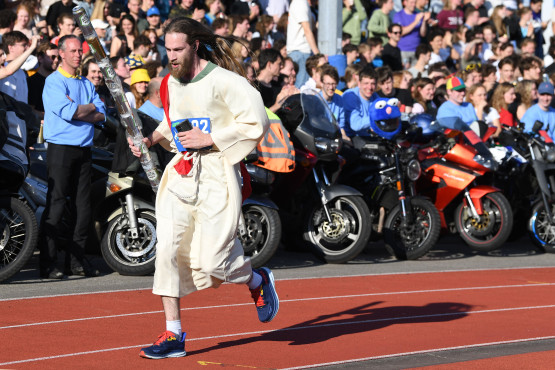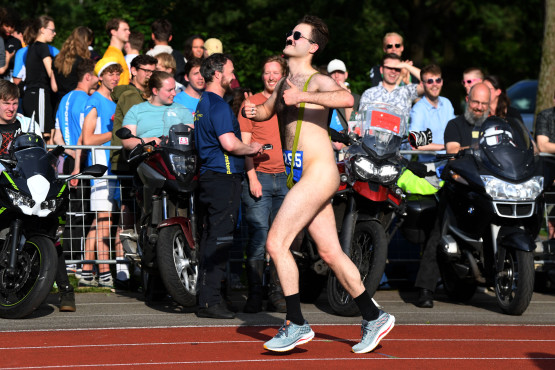 Eindsprintjes en bierdouches, lopers in vol ornaat of schaars gekleed. De laatste etappe van de Batavierenrace, van de Oude Markt naar de atletiekbaan op de campus, is altijd garantie voor bijzondere beelden van een bonte stoet. Een fotoverslag van afgelopen zaterdag.