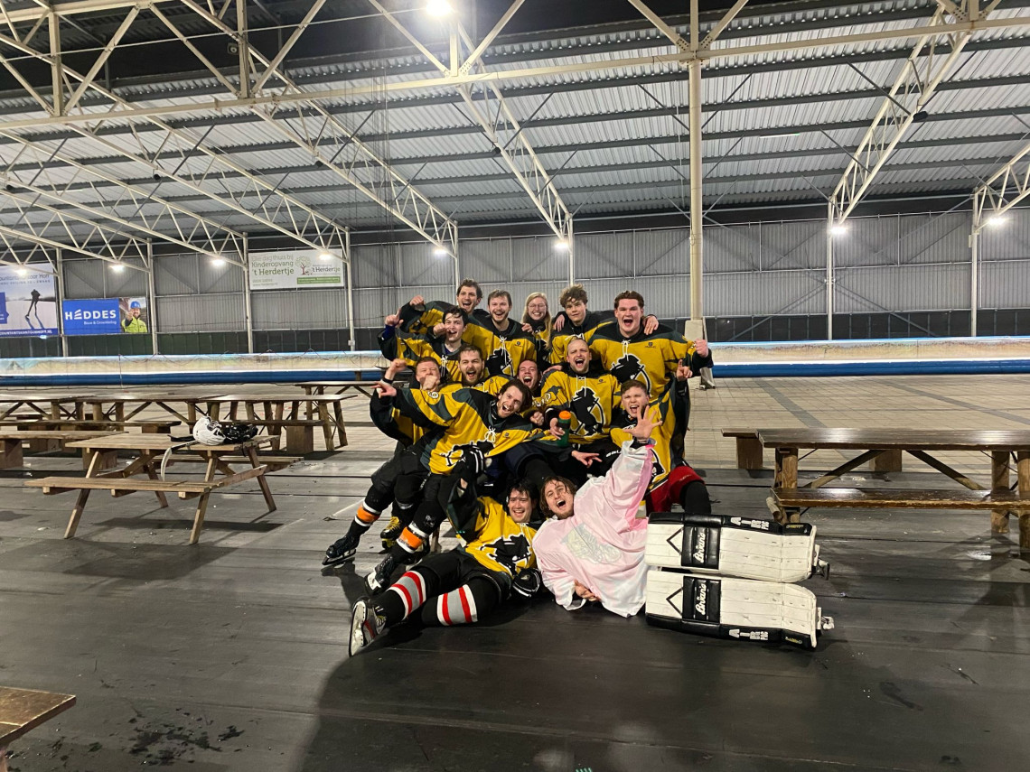 Na die eerste wedstrijd bleef het team het gehele seizoen ongeslagen in de Vierde divisie Noord. Kruit en Woortmeijer kijken vol trots terug op het seizoen. Met name op de ontknoping op 25 februari. ‘De laatste wedstrijd was in Amsterdam. We stonden 3-1 achter na de tweede periode (van de drie, red.). We hebben elkaar in de kleedkamer eens goed aangekeken en veranderingen aangebracht in de line-up’, vertelt Kruit. ‘En we konden rekenen op de steun van de meegereisde supporters’, vult Woortmeijer aan. ‘Die zaten direct achter de banken van beide teams en werden bij elke goal luider. Je zag dat de tegenstanders geïntimideerd raakten en in hun schulp kropen, terwijl wij constanter dan ooit speelden.’
