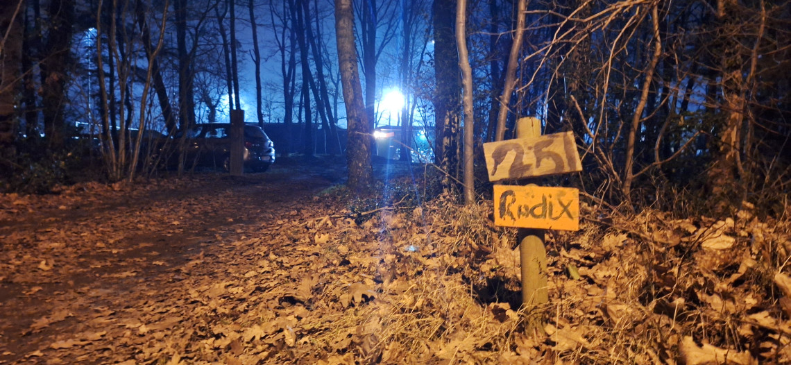Om bij Radix te komen krijgt de echte padvinder meteen een uitdaging voor de kiezen. Aan de Horstlindelaan spot je na lang zoeken - als je niet per ongeluk al bij sportclub Achilles het terrein opschiet - een minuscuul handgeverfd bordje tussen het loof: 25 Radix.