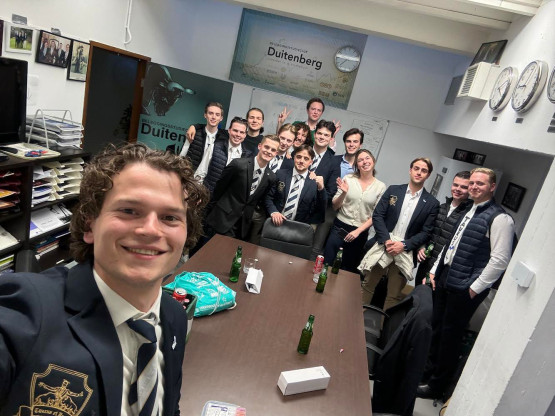 Zo zorgde één van die oude contacten in 2023 voor een studietour in Londen. Een oud-lid van Duitenberg regelde een inkijkje bij de Norddeutsche Landesbank Girozentrale (NORD/LB). En dat bezoek legde ze geen windeieren. ‘Het leverde direct één van onze leden een stage op’, zegt Visscher. Duitenberg werd ook vriendelijk ontvangen op het hoofdkantoor van Private Equity Firm Larchpoint Capital. ‘Daar kom je als kleine speler normaal gesproken echt niet zomaar binnen’, zeggen de heren trots.