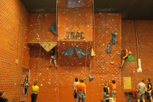 Wat TSAC wel heeft zijn drie klimwanden in het Sportcentrum én de welbekende buitenklimwand op het Sky-wooncomplex. ‘Met name die buitenwand kan rekenen op veel belangstelling. Veel omstanders kijken met interesse of spanning als we daar aan het klimmen zijn’, weet de voorzitter. Wat de klimsport zo mooi maakt? ‘Dat zal per persoon verschillen. Sommigen vinden het krachtsaspect bijvoorbeeld heel gaaf, daarin willen ze zichzelf uitdagen. Wat voor veel klimmers geldt, is dat het puzzelen heel leuk is: tijdens het klimmen je route naar boven bepalen. En dan heb je de adrenalinekick natuurlijk. Klimmen is een extreme sport.’