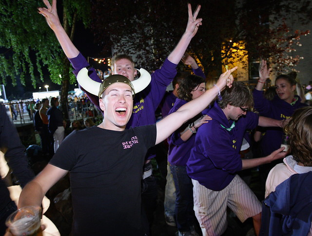 ‘We werken samen met acht horecapartners’, weet collega Van Straelen. ‘De meesten hiervan zijn extern, maar ook de Student Union en vereniging De Gevreesde Koe van de Vestingbar vallen hieronder. Naast de horecapartners zijn er nog een beveiligingsbedrijf en het Enschedese evenementenmanagementbedrijf, Absolutely Fresh. Laatstgenoemde gaat over de op- en afbouw van het feestterrein. Vrijwilligers hebben we niet, want die helpen alleen bij de race. Wel helpen een boel UT-medewerkers ons met de organisatiewerkzaamheden.’