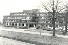 View of the EL/TN building (the Hogekamp), with in front of it the cleanroom building of MESA.