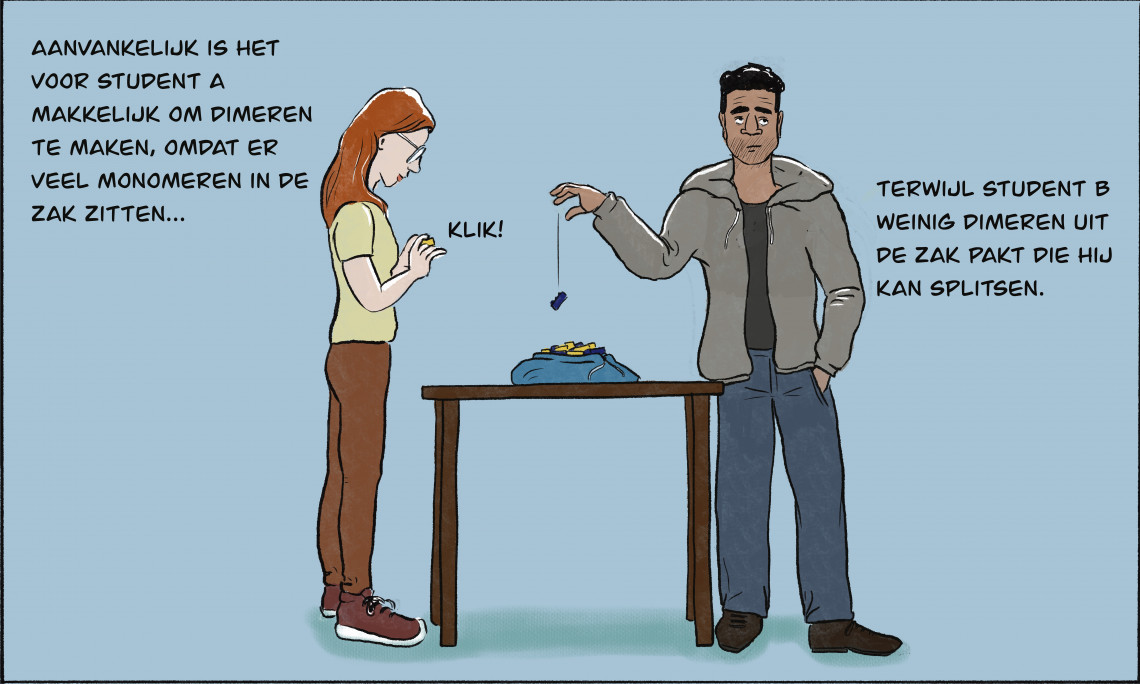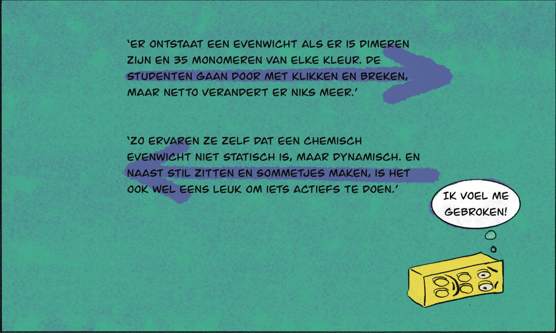 Hoe zorgen docenten dat hét kwartje valt bij hun studenten? Vaak door het gebruik van beeldspraak. Hoe ze dat precies doen, laat wetenschapsjournalist en illustrator Enith Vlooswijk zien in de rubriek 'Les in verbeelding'. Deze vijfde aflevering legt scheikundedocent Saskia Lindhoud chemisch evenwicht uit, met behulp van legoblokjes.