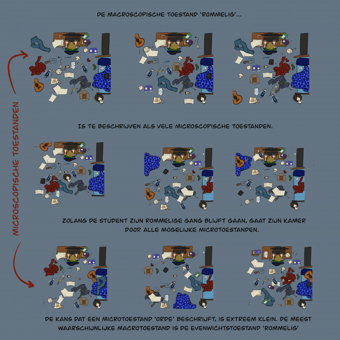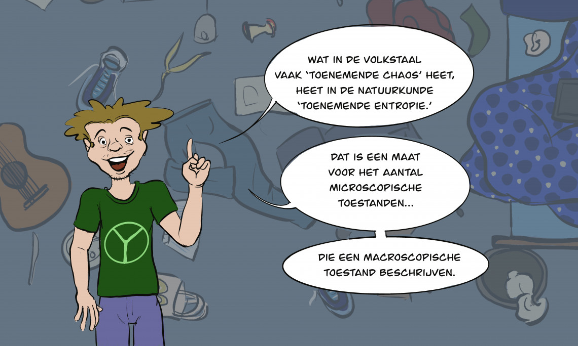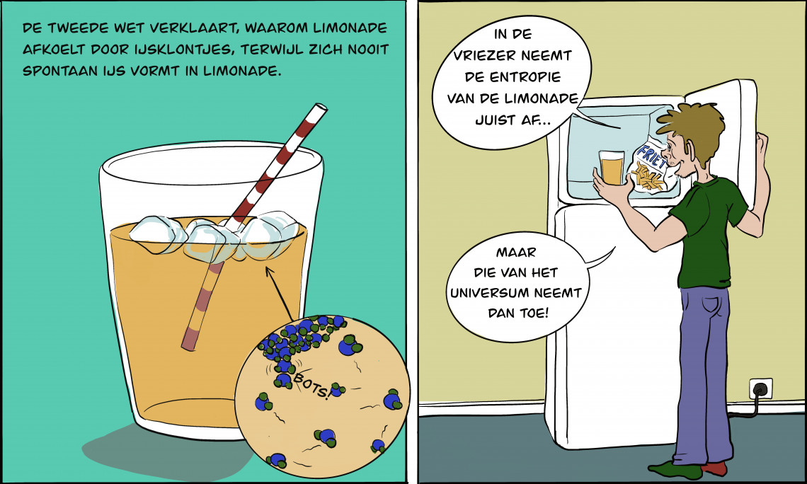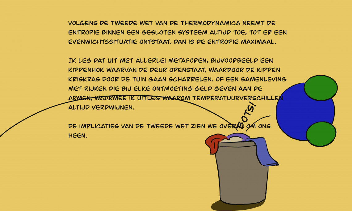 Hoe zorgen docenten dat hét kwartje valt bij hun studenten? Vaak door het gebruik van beeldspraak. Hoe ze dat precies doen, laat wetenschapsjournalist en illustrator Enith Vlooswijk zien in de rubriek 'Les in verbeelding'. In deze aflevering legt Martin van der Hoef (ATLAS, scheikundige technologie) de tweede hoofdwet van de thermodynamica uit.