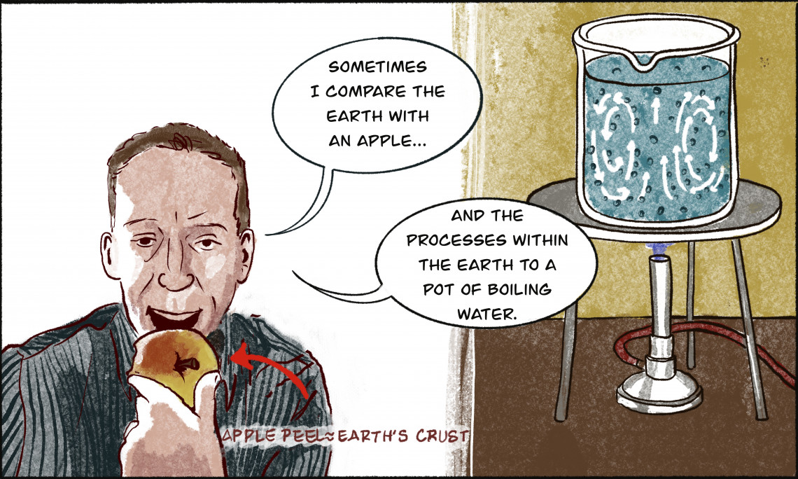 How do teachers ensure that the penny drops for their students? Often through the use of imagery. In the series 'Lessons in imagination', science journalist and illustrator Enith Vlooswijk shows exactly how they do that. This second episode: ITC professor Earth Structure and Dynamics Mark van der Meijde.