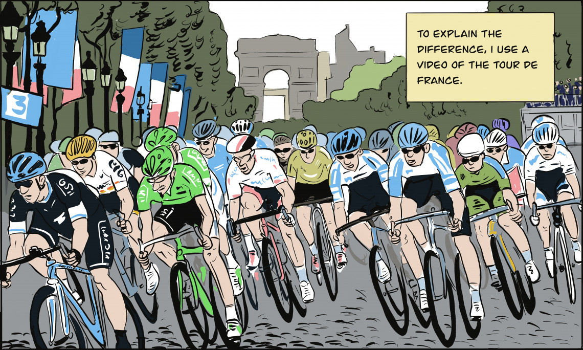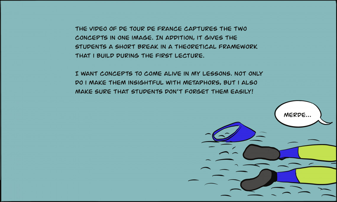 How do teachers ensure that the penny drops for their students? Often through the use of imagery. In the series 'Lessons in imagination', science journalist and illustrator Enith Vlooswijk shows exactly how they do that. In this eighth episode, civil engineering teacher Pieter Roos uses the Tour de France as an example to explain fluid mechanics.
