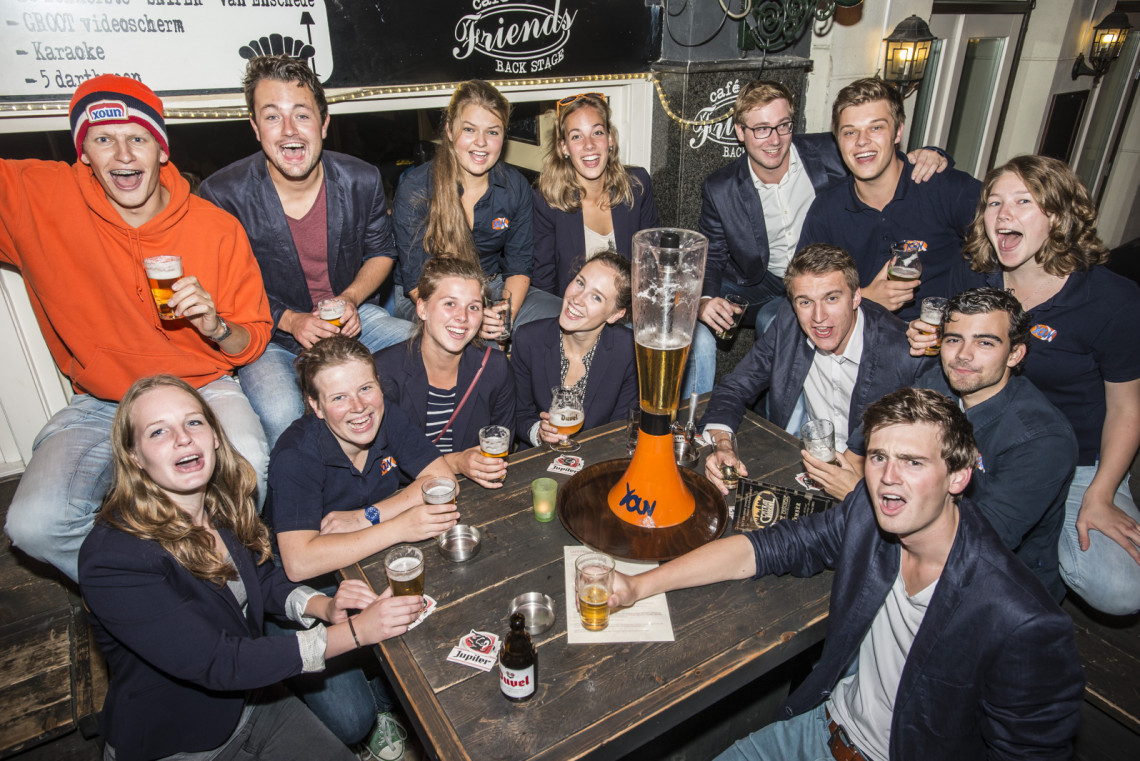 Lisa:‘Op borrels drinken we wel altijd uit onze eigen biertoren waar zo’n drie liter bier in kan. Ook is het belangrijk dat je Xoun-kleding draagt op borrels. Wanneer je niet de juiste kleding aan hebt, moet je een rondje bittergarnituur halen.’