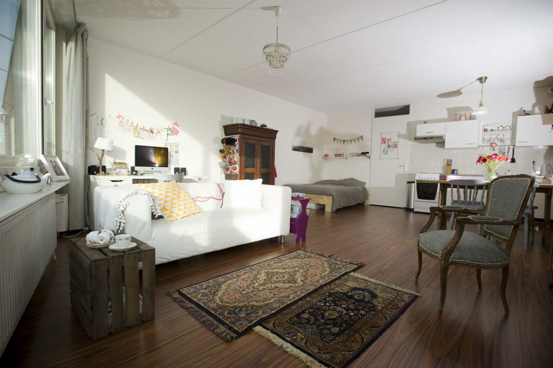 Een eigen appartementje aan de Deurningerstraat. Ze betaalt voor haar 40 m2 na aftrek van de huursubsidie €330.