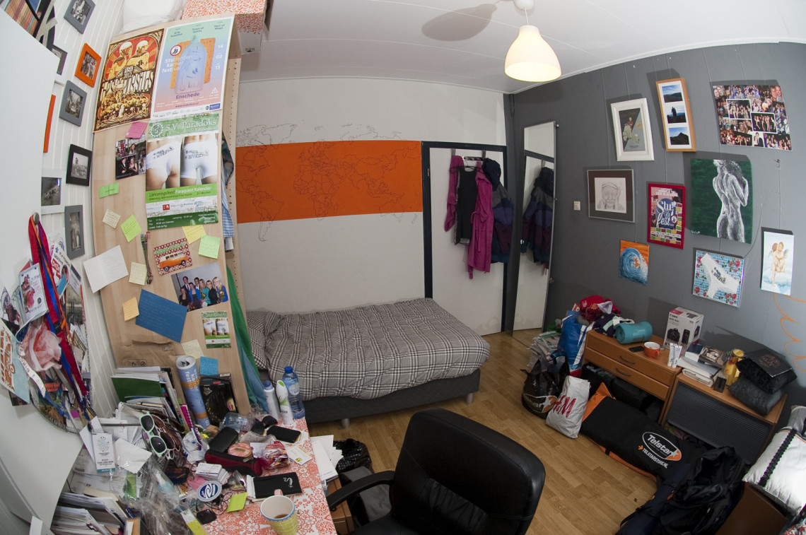 Een kamer van ca. 14 m2 in studentenhuis ‘het Beunhuis’, gelegen aan de Noorderhagen. Hiervoor betaalt ze €255 inclusief gas, water en elektriciteit.