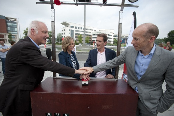 Wethouder Marijke van Hees van de gemeente Enschede verrichtte samen met Kees Eijkel, directeur van Kennispark Twente, en de twee UT-alumni Leo van den Ende (bedrijfskunde) en Walter Rijk (elektrotechniek), oprichters van Sigmax, een bedrijf gelegen aan Capitool, de openingshandeling. Met een druk op de knop zorgden zij dat de fraaie fontein op het plein in werking trad.