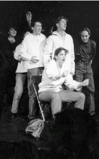 NestDonderdag 25 en vrijdag 26 januari speelt UT-vereniging NEST de voorstelling 'Allen die Vallen', onder leiding van regisseur Oscar Wagenmans. Het stuk is gebaseerd op een hoorspel van Samuel Beckett en wordt opgevoerd in een opname kamer, waar 7 acteurs en 1 regisseur bijeen komen om het stuk op de band te zetten. Het absurdistische stuk heeft een subtiele ondertoon en dat maakt het er niet gemakkelijker op voor de ook nog eens ongemotiveerde acteurs. De regisseur probeert d.m.v. hulpstukken de acteurs tot inleving te brengen. De voorstellingen beginnen om 20.30. Kaarten verkrijgbaar bij: portier Vrijhof en kosten f7,50/f4,- (zonder/met CJP/CK/E-pas/pas65).