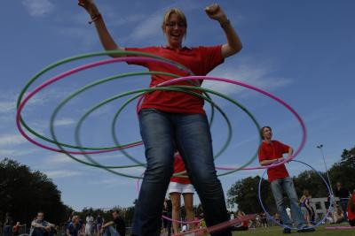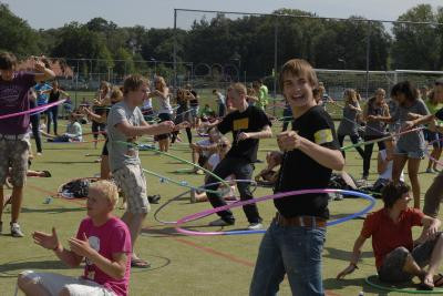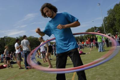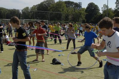Het is de Kick-In-deelnemers niet gelukt het wereldrecord hoelahoepen te verbeteren. Van de 784 studenten die zich vanmiddag op het kunstgrasveld verzamelden, slaagden slechts 250 erin een hoepel twee minuten lang rond hun middel te bewegen. Het record stond op 342.