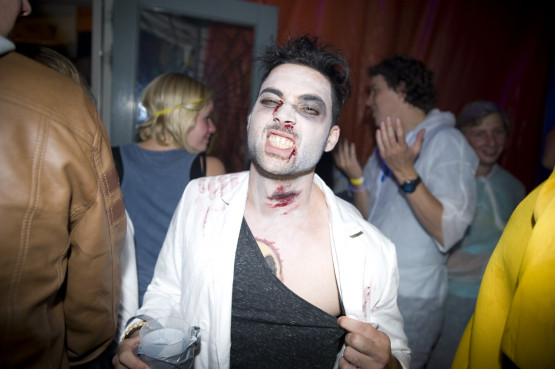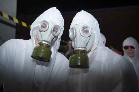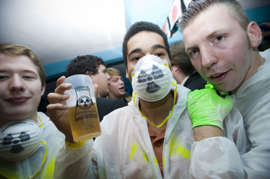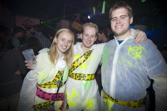 Het flatfeest van Campuslaan 39, 41 en 43 was gisteravond, vrijdag 20 september, volledig uitverkocht. Dat betekende vierhonderd bontverklede bezoekers over de vloer. Geinspireerd door het thema Labiel in Chernobyl kwamen de gasten passend uitgedost naar het feest. De gasmaskers, witte pakken en mondkapjes leverden fraaie plaatjes op.