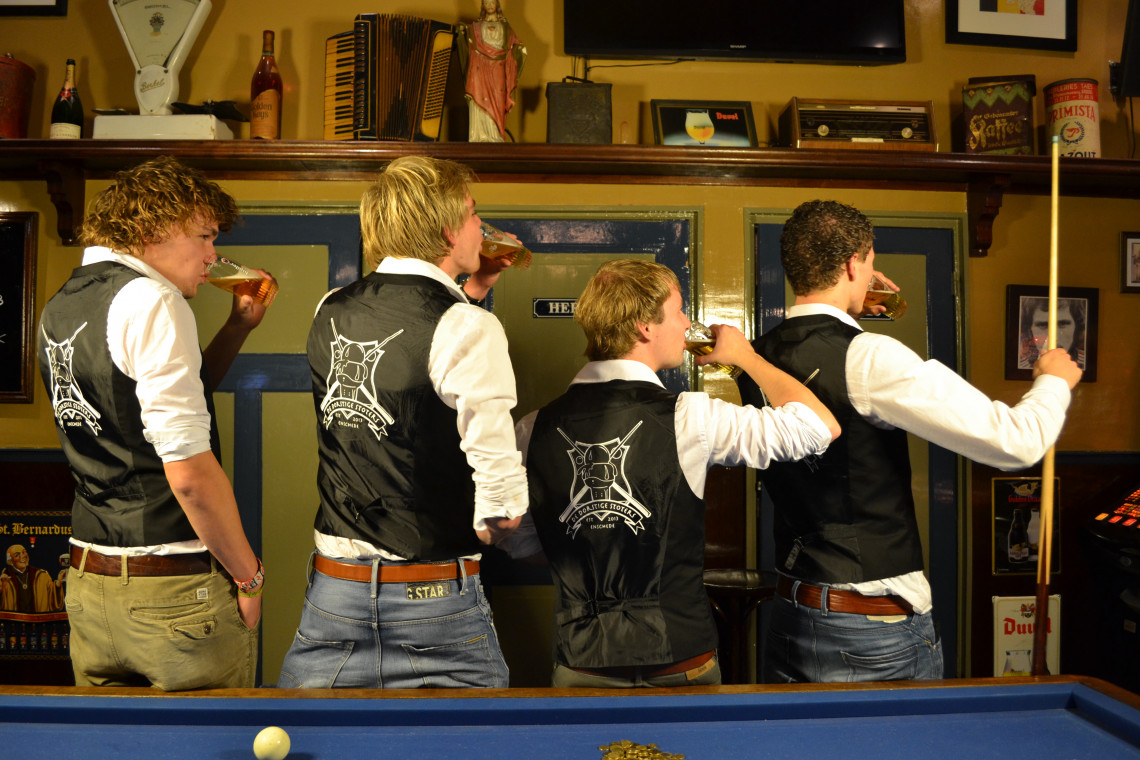 ‘Lid worden van het genootschap gaat niet zomaar, daarvoor zal je het een en ander moeten doen’, zegt Tijn. ‘Bovendien is het Dorstige Stoterschap alleen voor mannen weggelegd. Vrouwen kunnen bij ons wel een zogenaamde VIS worden: een Very Important Supporter. Mooi toch?’