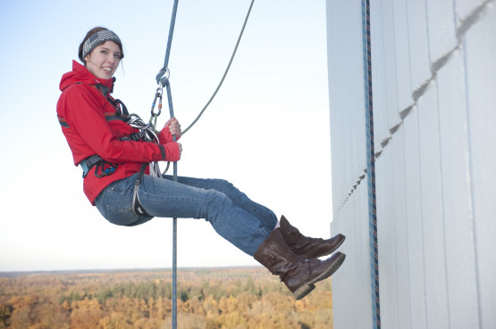 Het idee om als studievereniging te gaan abseilen komt van Communiqué-bestuurder Carolien Verbeeten (20). ‘We wilden een activiteit doen waarbij we ook niet-actieve leden konden trekken. We hopen zo meer studenten actief te krijgen voor onze vereniging. We hebben zelfs een flowchart meegenomen van alle commissies die bij ons mogelijk zijn. Zo kunnen niet-actieve leden zien wat er wel niet allemaal mogelijk is.’ Met de positieve reacties is Verbeeten in ieder geval heel blij. En wat ze er zelf van vond? ‘Het was doodeng maar ik ben blij dat ik het gedaan heb!’