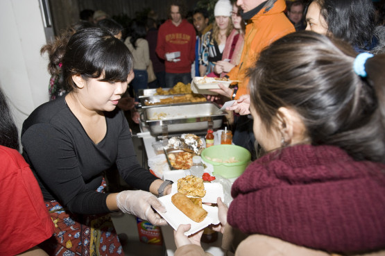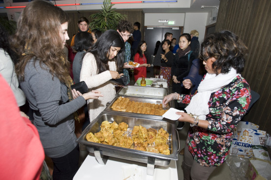 Het geurige Indonesische eten was door het hele Atrium, waar het spektakel plaats vond, te ruiken. Eigenlijk moest je je vooraf aanmelden, maar spontane bezoekers die kennis wilden maken met Indonesisch Enschede waren ook erg welkom. Met keuze uit vijf verschillende 'big meals' was er voor elk wat wils. Naast de hoofdmaaltijden was ter afwisseling voor kleine snacks gezorgd. Hapjes als een 'kue biggis', een stevig, zoet, gestoomd cakeje kom je niet in de supermarkt tegen, maar ze zijn wel meer dan de moeite waard om eens te proberen.