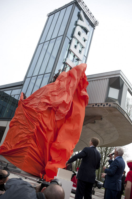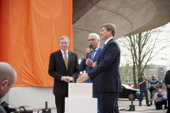 Het doek dat over the Gallery hing, wilde op het moment suprême niet direct naar beneden vallen. Bovendien was de 3D-geprinte sleutel voor de openingshandeling eigenlijk nog niet helemaal af. Het leek niemand te storen. Het feit dat de koning de UT bezocht, was voor belangrijke en minder belangrijke mensen reden genoeg om uit te lopen.