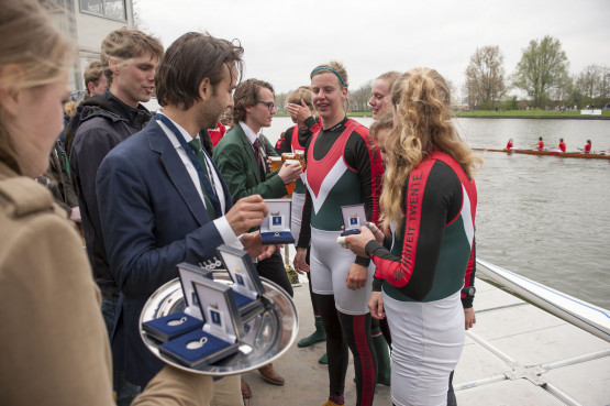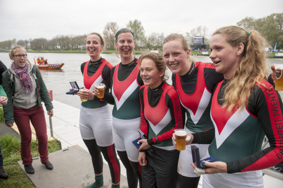 ‘Eigenlijk wel verwacht. Vorig jaar hebben wij niet geblikt waardoor wij in dit veld mee konden doen. Wij waren de enige tweedejaars, de andere boten bestonden uit eerstejaars. Bij de Van Oord Winterwedstrijden zijn wij, in nagenoeg hetzelfde veld, ook eerste geworden. Wij waren het dus wel een beetje aan onze stand verplicht. Maar je moet het dan nog wel doen.’