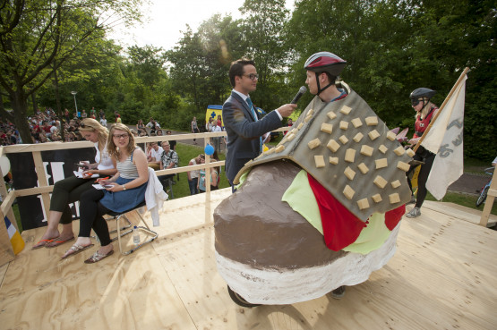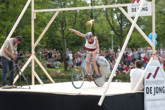 Mede door de aangename temperatuur, het in groten getale toegestroomde publiek en een overenthousiaste commentator zat de sfeer er goed in. Veel deelnemers gaven echter aan niet geheel vrijwillig op de fiets te zijn gestapt maar bijvoorbeeld een wedstrijdje ‘steen, papier, schaar’ te hebben verloren. Ook de zenuwen sloegen bij veel deelnemers, eenmaal op de schans, toe. De één met als doel de snelste tijd neer te zetten, de ander met als doel de originaliteitprijs of pechprijs te winnen.