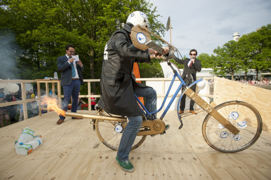 Van de schans gingen onder andere een Pikachu, pinguïn, koe, draak, bierkratje en biljartballen. Twee teams gingen de schans af met een kinderfietsje en met een vuurspuwende fiets was ook het technische gedeelte aanwezig. Het meest opzienbarende was misschien wel de jongeman die met een fust bier als voorwiel van de schans afging en midden op de baan besloot te stoppen om een selfie te maken, voor zijn moeder. De originele fietsen van ZPV Piranha en Ideefiks verschenen niet aan de start, deze waren gestolen.