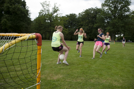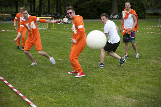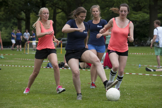 De Patatras Socces Experience vindt ieder jaar plaats op de dag dat Nederland de eerste wedstrijd van een EK of WK speelt – morgen dus. ‘Verschillende studentenhuizen gaan dan voetbalstrijd aan in het Van Heekpark,’ vertelt Angelovski.