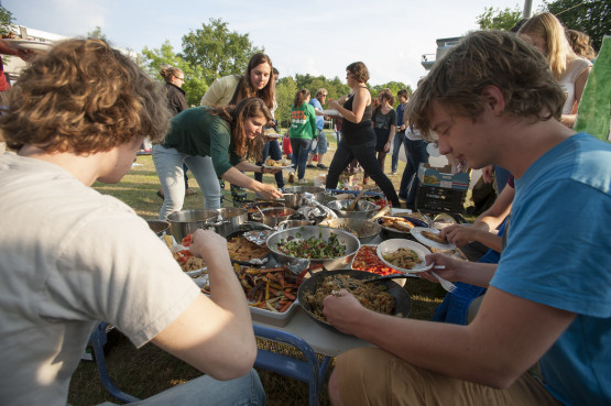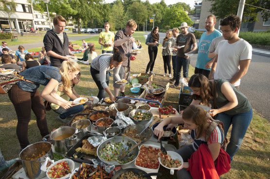 Betina besloot om de campusbewoners niet te wijzen op voedselverspilling door met een opgeheven vingertje te zwaaien, maar door een eet-evenement te organiseren. Gratis eten met een boodschap, dat werkt, bedacht ze.