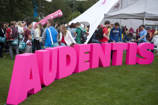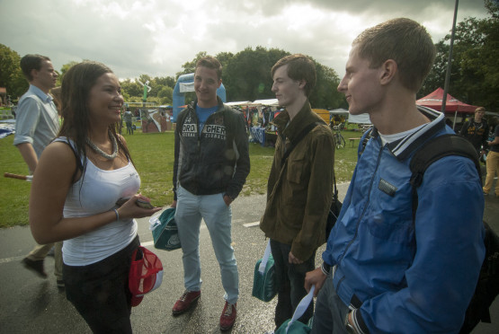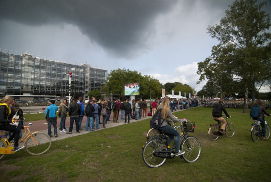 Zoals gebruikelijk wachten studie-, sport- en gezelligheidsverenigingen (en tal van andere organisaties die behoefte hebben aan nieuwe aanwas) de kersverse studenten op. Onder meer het Carillonveld staat vol met vrolijk aangeklede stands, wervende verenigingsleden staan er ver voor. De eerstejaars, op hun beurt, staan nog rustig in de rij aan het begin van de campus: ze moeten zich eerst aanmelden.