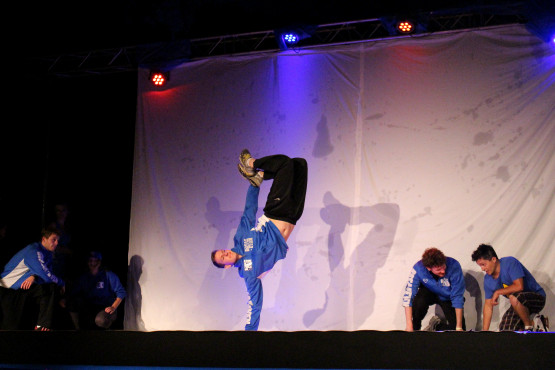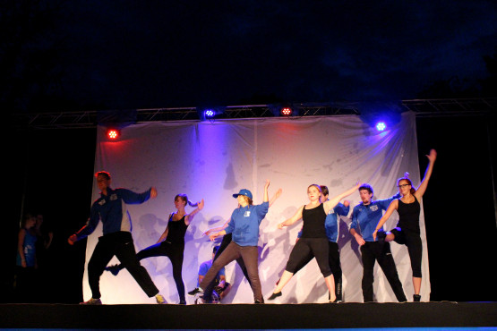 Het veld vol rumoerige studenten viel rond half tien stil. Een paar goed geplaatste spotlights zorgden voor een mooi schaduweffect op een wit doek. Jazzdansvereniging Chassé opende de act met strakke dance moves. Breakdanceclub Break-Even haakte al snel in voor een duet op een enkele vrolijke zomerhits.