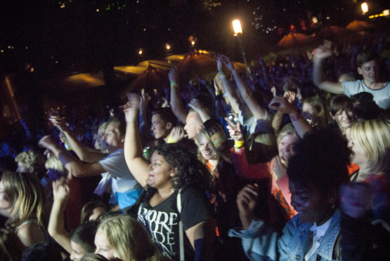 Hiphopartiest Kraantje Pappie heeft zojuist zijn optreden afgerond. Het is de beurt aan zanger Jett Rebel. Eerstejaars Jarno Bredenoord (IBA) staat achteraan wat te kletsen met zijn doegroepgenootjes. ‘Alles was leuk van de introductie’, blikt hij terug op de afgelopen week. ‘In het bijzonder de schuimparty in de Vestingbar. Overdag waren we wel brak hoor.'